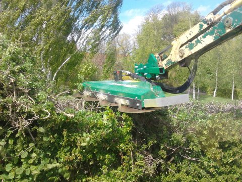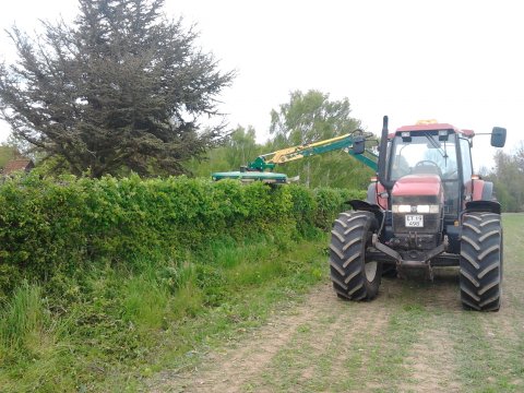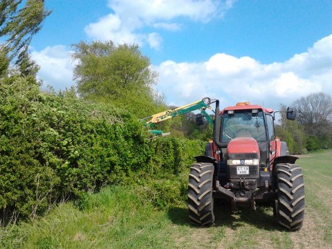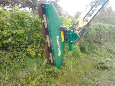 Klipning af levende hegn med traktormoneteret Spearhead Twiga 6000T hegnsklipper.